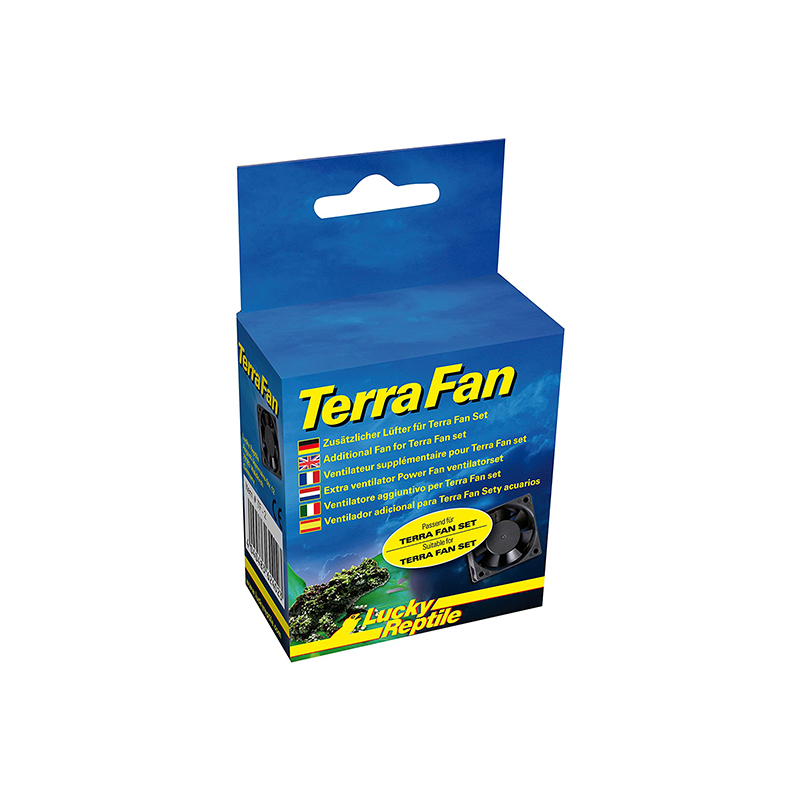 A TerraFan rendszer hőmérséklet-szabályozott, ez azt jelenti, hogy a hőmérséklettől függően a ventilátorok sebessége csökkenni vagy nőni fog, hogy optimális körülményeket biztosítsanak a terráriumon belül. Az alapkészlet egy adapterből és két ventilátorból áll. Ezt egészíthetjük ki az Extension Fan ventilátorral.